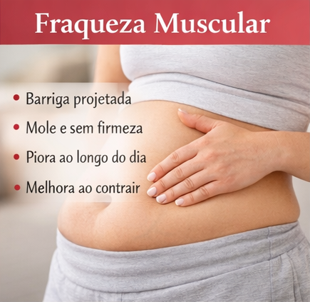 - Expodiástase, quando a fraqueza muscular é a base do problema